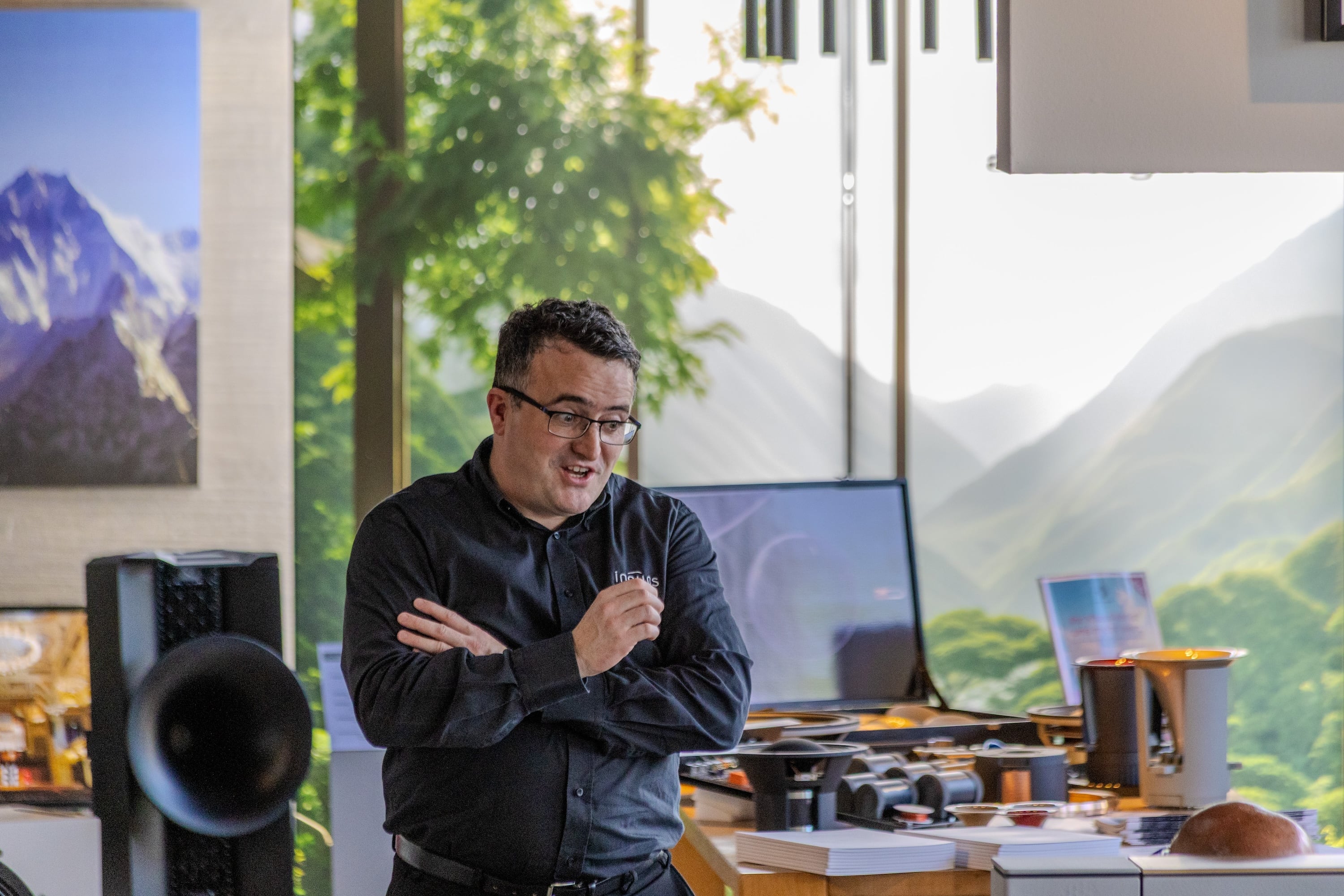 Wer von unseren gut gelaunten Kollegen am Eingang empfangen wurde, durfte zunächst einen Blick auf die absoluten Wunderwerke von Avantgarde Acoustic werfen: Die ganz großen Stars gaben sich in diesem Jahr sehr volksnah – quasi zum Anfassen, kleiner Exkurs in Sachen Audiotechnologie inklusive.